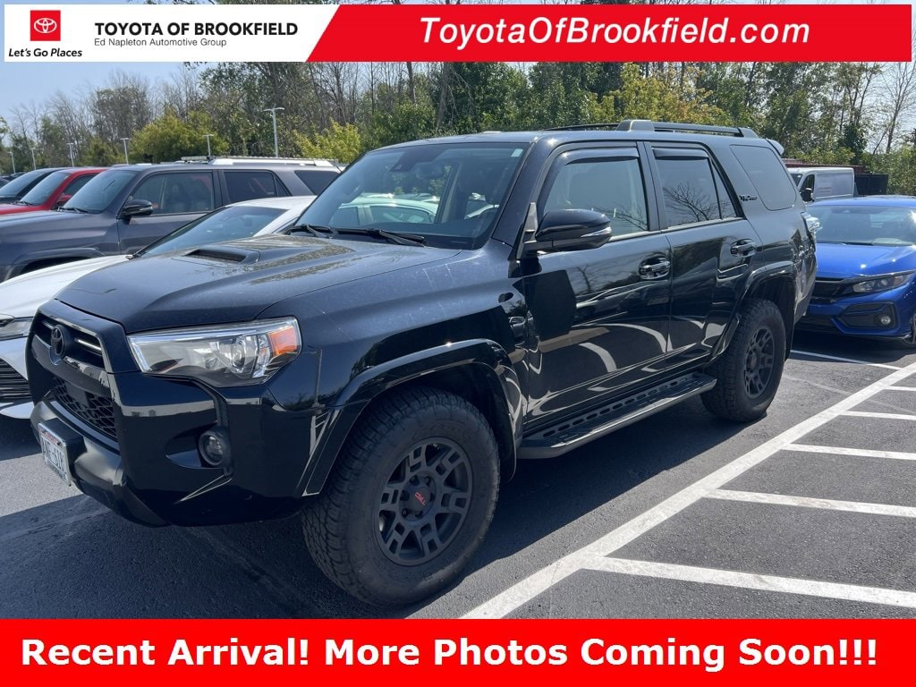 This 4Runner is well equipped with Overland Option (Black Roof Rails, Body Color Heated Mirrors, Garage Door Opener, and Wireless Smart Entry Door Lock), Venture Package (All Weather Floor Liners, Crossbars, Venture Cargo Tray, and Yakima Roof Cargo Basket), Toyota Gold Certified Certified, 4WD, Black/Graphite w/Softex Synthetic Leather Seat Trim, Moonroof w/Tilt Up & Slide, Trail Running Boards (TMS), 3.727 Axle Ratio, 4-Wheel Disc Brakes, 8 Speakers, ABS brakes, Air Conditioning, Alloy wheels, AM/FM radio: SiriusXM, Anti-whiplash front head restraints, Apple CarPlay/Android Auto, Auto High-beam Headlights, Auto-dimming Rear-View mirror, Brake assist, Bumpers: body-color, Compass, Driver door bin, Driver vanity mirror, Dual front impact airbags, Dual front side impact airbags, Electronic Stability Control, Emergency communication system: Safety Connect with 1-year trial, Exterior Parking Camera Rear, Front anti-roll bar, Front Bucket Seats, Front Center Armrest, Front fog lights, Front reading lights, Front wheel independent suspension, Garage door transmitter: HomeLink, Heated door mirrors, Heated front seats, High Performance LED Fog Lights (TMS), Illuminated entry, Knee airbag, Leather Shift Knob, Leather steering wheel, Low tire pressure warning, Navigation System, Occupant sensing airbag, Outside temperature display, Overhead airbag, Overhead console, Panic alarm, Passenger door bin, Passenger vanity mirror, Power door mirrors, Power driver seat, Power passenger seat, Power steering, Power windows, Radio: Premium Audio w/Dynamic Navigation, Rear anti-roll bar, Rear seat center armrest, Rear window defroster, Rear window wiper, Remote keyless entry, Roof rack, Security system, Softex Synthetic Leather Seat Trim, Speed control, Speed-sensing steering, Split folding rear seat, Spoiler, Steering wheel mounted audio controls, Tachometer, Telescoping steering wheel, Tilt steering wheel, Traction control, Trip computer, Turn signal indicator mirrors, Variably intermittent wipers, and Wheels: 17 Matte Black Flow-Formed TRD Alloy.