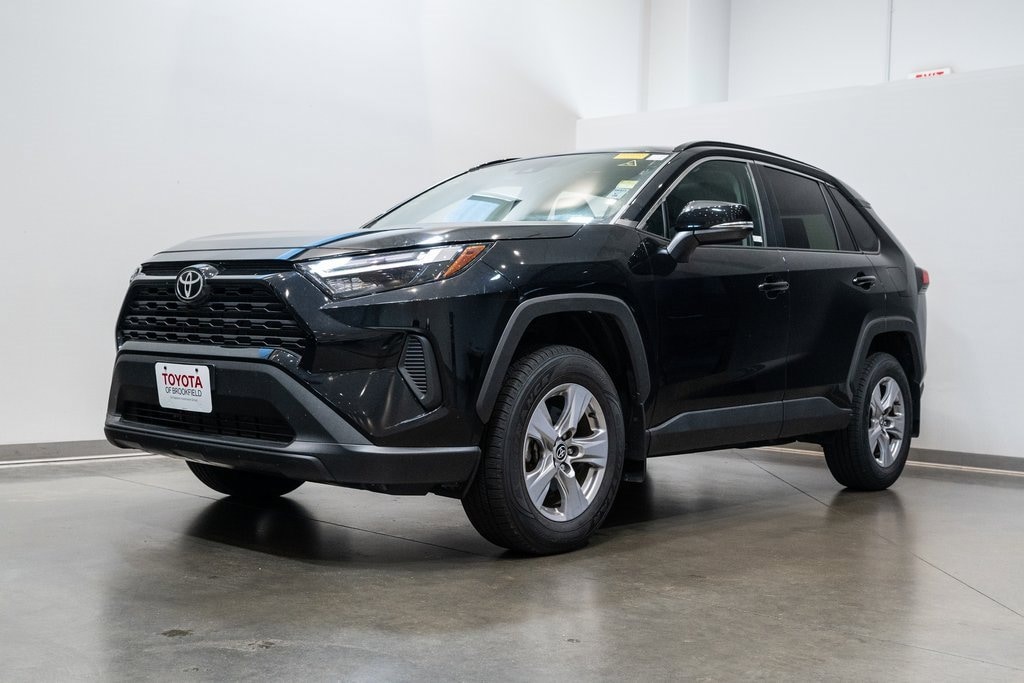 This RAV4 is well equipped with Convenience Package (Front Door Smart Key System w/Push Button Start and Tilt & Slide Moon Roof), XLE Grade Weather Package (3 Spoke Leather Heated Steering Wheel, Front Seat Heating, and Rain Sensing Front Wipers), Toyota Gold Certified Certified, AWD, Black w/Fabric Seat Trim, 4-Wheel Disc Brakes, 6 Speakers, ABS brakes, Air Conditioning, Alloy wheels, AM/FM radio: SiriusXM, AM/FM Stereo, Apple CarPlay/Android Auto, Auto High-beam Headlights, Automatic temperature control, Axle Ratio: 3.177, Brake assist, Bumpers: body-color, Delay-off headlights, Driver door bin, Driver vanity mirror, Dual front impact airbags, Dual front side impact airbags, Electronic Stability Control, Emergency communication system: Safety Connect with 1-year trial, Exterior Parking Camera Rear, Fabric Seat Trim, Four wheel independent suspension, Front anti-roll bar, Front Bucket Seats, Front Center Armrest, Front dual zone A/C, Front reading lights, Fully automatic headlights, Heated door mirrors, Illuminated entry, Knee airbag, Low tire pressure warning, Occupant sensing airbag, Outside temperature display, Overhead airbag, Overhead console, Panic alarm, Passenger door bin, Passenger vanity mirror, Power door mirrors, Power driver seat, Power steering, Power windows, Radio data system, Rear anti-roll bar, Rear seat center armrest, Rear window defroster, Rear window wiper, Remote keyless entry, Roof rack: rails only, Speed control, Speed-sensing steering, Split folding rear seat, Spoiler, Steering wheel mounted audio controls, Tachometer, Telescoping steering wheel, Tilt steering wheel, Traction control, Trip computer, Turn signal indicator mirrors, Variably intermittent wipers, and Wheels: 17 5-Spoke Silver Alloy.