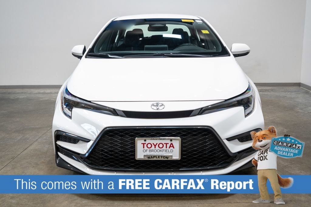 This Corolla is well equipped with Toyota Gold Certified Certified, Auto High-beam Headlights, Radio: 8 Toyota Audio Multimedia, Remote keyless entry, 4-Wheel Disc Brakes, 6 Speakers, ABS brakes, Air Conditioning, Alloy wheels, AM/FM radio: SiriusXM, Automatic temperature control, Brake assist, Bumpers: body-color, Delay-off headlights, Driver door bin, Driver vanity mirror, Dual front impact airbags, Dual front side impact airbags, Electronic Stability Control, Emergency communication system: Safety Connect (up to 10-year trial subscription), Exterior Parking Camera Rear, Four wheel independent suspension, Front anti-roll bar, Front Bucket Seats, Front Center Armrest, Front reading lights, Front Sport Seats, Fully automatic headlights, Heated door mirrors, Illuminated entry, Knee airbag, Leather steering wheel, Low tire pressure warning, Occupant sensing airbag, Outside temperature display, Overhead airbag, Panic alarm, Passenger door bin, Passenger vanity mirror, Power door mirrors, Power steering, Power windows, Premium Seat Trim, Radio data system, Rear anti-roll bar, Rear seat center armrest, Rear side impact airbag, Rear window defroster, Speed control, Split folding rear seat, Spoiler, Steering wheel mounted audio controls, Tachometer, Telescoping steering wheel, Tilt steering wheel, Traction control, Trip computer, Turn signal indicator mirrors, Variably intermittent wipers, and Wheels: 18 Alloy w/Graphite Finish.