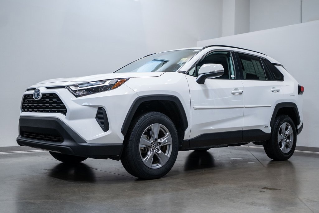 This RAV4 Hybrid is well equipped with Toyota Gold Certified Certified, 2.5L 4-Cylinder, Blind Spot Monitor & Rear Cross Traffic Alert, 4-Wheel Disc Brakes, 6 Speakers, ABS brakes, Air Conditioning, Alloy wheels, AM/FM radio: SiriusXM, Auto High-beam Headlights, Automatic temperature control, Axle Ratio: TBD, Brake assist, Bumpers: body-color, Driver door bin, Driver vanity mirror, Dual front impact airbags, Dual front side impact airbags, Electronic Stability Control, Emergency communication system: Safety Connect (1-year trial), Exterior Parking Camera Rear, Fabric Seat Trim, Four wheel independent suspension, Front anti-roll bar, Front Bucket Seats, Front Center Armrest, Front dual zone A/C, Front reading lights, Illuminated entry, Knee airbag, Low tire pressure warning, Occupant sensing airbag, Outside temperature display, Overhead airbag, Overhead console, Panic alarm, Passenger door bin, Passenger vanity mirror, Power door mirrors, Power steering, Power windows, Radio data system, Radio: AM/FM/XM Audio System, Rear anti-roll bar, Rear seat center armrest, Rear window defroster, Rear window wiper, Remote keyless entry, Speed control, Speed-sensing steering, Split folding rear seat, Spoiler, Steering wheel mounted audio controls, Telescoping steering wheel, Tilt steering wheel, Traction control, Trip computer, and Wheels: 17 x 7.0J Silver Aluminum Alloy.