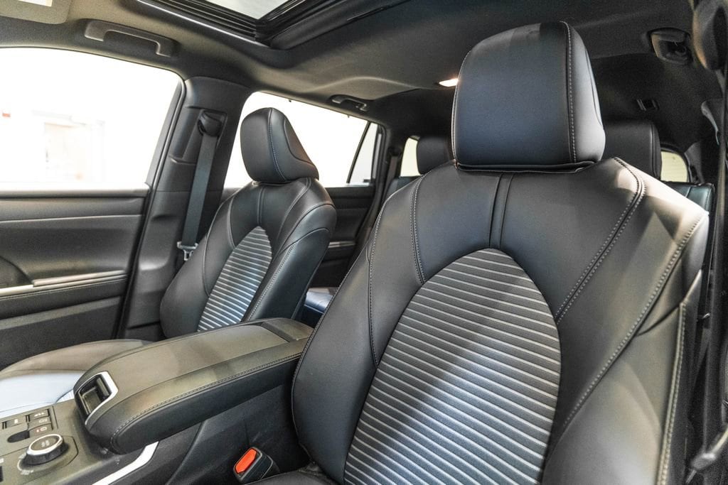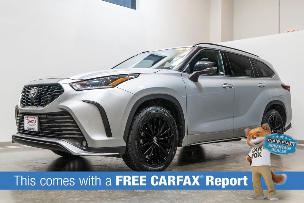 This Highlander is well equipped with Toyota Gold Certified Certified, AWD, Active Cruise Control, Alloy wheels, Heated door mirrors, Heated Front Bucket Seats, Illuminated entry, Power Liftgate, Power moonroof, Radio: 8 Toyota Audio Multimedia, Remote keyless entry, 3rd row seats: split-bench, 4-Wheel Disc Brakes, 6 Speakers, ABS brakes, Air Conditioning, AM/FM radio: SiriusXM, Apple CarPlay/Android Auto, Auto High-beam Headlights, Auto-dimming Rear-View mirror, Automatic temperature control, Bodyside moldings, Brake assist, Bumpers: body-color, Delay-off headlights, Driver door bin, Driver vanity mirror, Dual front impact airbags, Dual front side impact airbags, Electronic Stability Control, Emergency communication system: Safety Connect (up to 10-year trial subscription), Exterior Parking Camera Rear, Four wheel independent suspension, Front anti-roll bar, Front Bucket Seats, Front Center Armrest, Front dual zone A/C, Front fog lights, Front reading lights, Fully automatic headlights, Garage door transmitter: HomeLink, Heated front seats, Knee airbag, Leather Shift Knob, Leather steering wheel, Low tire pressure warning, Mixed Media Seat Trim, Occupant sensing airbag, Outside temperature display, Overhead airbag, Overhead console, Panic alarm, Passenger door bin, Passenger vanity mirror, Power door mirrors, Power driver seat, Power passenger seat, Power steering, Power windows, Rear air conditioning, Rear anti-roll bar, Rear reading lights, Rear window defroster, Rear window wiper, Reclining 3rd row seat, Security system, Speed control, Speed-sensing steering, Split folding rear seat, Spoiler, Steering wheel mounted audio controls, Tachometer, Telescoping steering wheel, Tilt steering wheel, Traction control, Trip computer, Turn signal indicator mirrors, Variably intermittent wipers, and Wheels: 20 Black Painted Alloy.