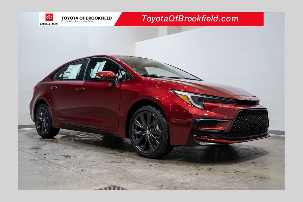 This Corolla is well equipped with SE Package (12.3 Digital Gauge Cluster, Qi-Compatible Wireless Smartphone Charger, and Radio: 10.5 Toyota Audio Multimedia), 4-Wheel Disc Brakes, 6 Speakers, ABS brakes, Air Conditioning, Alloy wheels, AM/FM radio: SiriusXM, Apple CarPlay/Android Auto, Auto High-beam Headlights, Automatic temperature control, Black Roof, Brake assist, Bumpers: body-color, Delay-off headlights, Driver door bin, Driver vanity mirror, Dual front impact airbags, Dual front side impact airbags, Electronic Stability Control, Emergency communication system: Safety Connect (up to 10-year trial subscription), Exterior Parking Camera Rear, Fabric Seat Trim, Four wheel independent suspension, Front anti-roll bar, Front Bucket Seats, Front Center Armrest, Front reading lights, Front Sport Seats, Fully automatic headlights, Heated door mirrors, Illuminated entry, Knee airbag, Leather steering wheel, Low tire pressure warning, Occupant sensing airbag, Outside temperature display, Overhead airbag, Panic alarm, Passenger door bin, Passenger vanity mirror, Power door mirrors, Power steering, Power windows, Radio data system, Radio: 8 Toyota Audio Multimedia, Rear anti-roll bar, Rear seat center armrest, Rear side impact airbag, Rear window defroster, Remote keyless entry, Speed control, Split folding rear seat, Spoiler, Steering wheel mounted audio controls, Tachometer, Telescoping steering wheel, Tilt steering wheel, Traction control, Trip computer, Turn signal indicator mirrors, and Variably intermittent wipers.