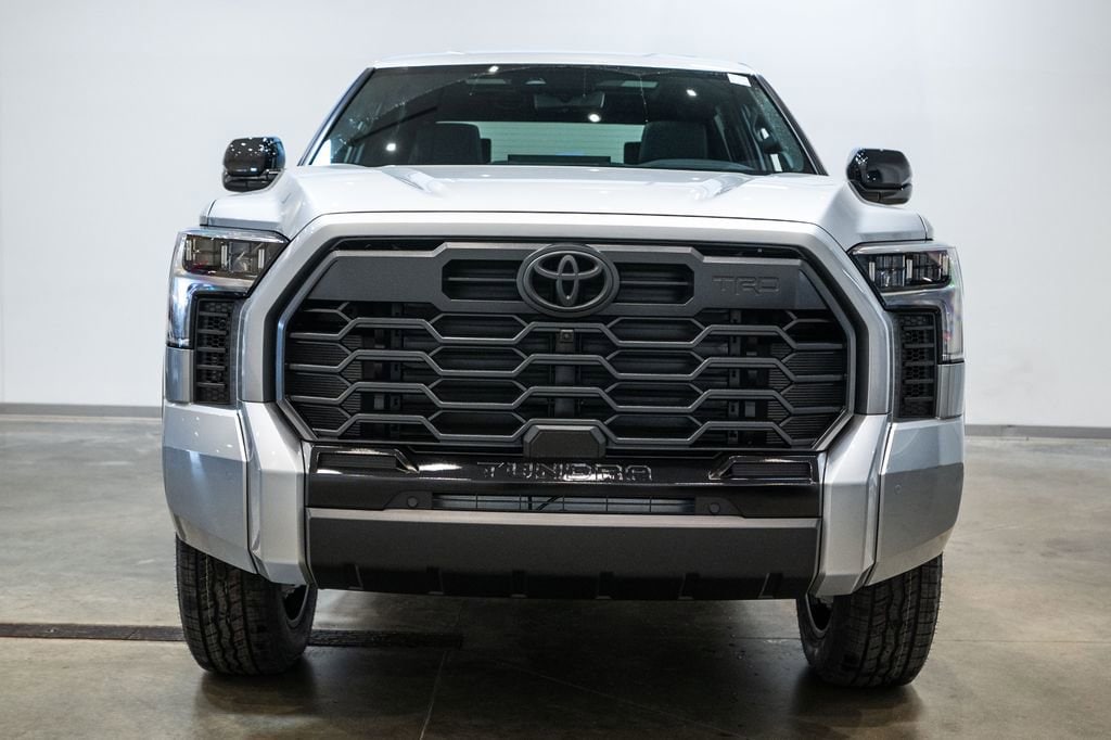 This Tundra is well equipped with Power Package (120V Deck and Cabin Power Supply and Wireless Charger), Premium Package (High Grade Full LED Headlamp), TRD Off-Road Package, 4WD, Black Leather, 20 Alloy Wheels, 3.31 Axle Ratio, 3 Lift Kit, 4-Wheel Disc Brakes, 8-Way Power Adjustable Heated/Ventilated Front Seats, 9 Speakers, ABS brakes, Air Conditioning, All Weather Floor Liners, Alloy wheels, AM/FM radio: SiriusXM, Apple CarPlay/Android Auto, Auto High-beam Headlights, Auto-dimming door mirrors, Auto-dimming Rear-View mirror, Automatic temperature control, Bed Mat, Bed Step, Brake assist, Bumpers: body-color, Delay-off headlights, Driver door bin, Driver vanity mirror, Dual front impact airbags, Dual front side impact airbags, Electronic Stability Control, Emergency communication system: Safety Connect (up to 10-year trial subscription), Exterior Parking Camera Rear, Folding Color-Keyed Outside Mirrors, Front anti-roll bar, Front Bucket Seats, Front Center Armrest, Front dual zone A/C, Front fog lights, Front reading lights, Front wheel independent suspension, Fully automatic headlights, Garage door transmitter: HomeLink, Heated door mirrors, Heated front seats, Heated Leather Steering Wheel, Illuminated entry, JBL Premium Audio, Knee airbag, Leather Seat Trim, Leather Shift Knob, Leather steering wheel, Low tire pressure warning, Memory seat, Navigation system: Drive Connect Cloud Navigation (1-year trial subscription), Occupant sensing airbag, Outside temperature display, Overhead airbag, Overhead console, Panic alarm, Panoramic Sunroof and Moonroof, Passenger door bin, Passenger vanity mirror, Power door mirrors, Power driver seat, Power passenger seat, Power steering, Power windows, Radio data system, Radio: Audio Plus, Rear reading lights, Rear seat center armrest, Rear step bumper, Rear window defroster, Remote keyless entry, Safety Connect, Security system, Speed control, Speed-sensing steering, Split folding rear seat, Steering wheel mounted audio controls, Tachometer, Telescoping steering wheel, Tilt steering wheel, Traction control, Trip computer, Turn signal indicator mirrors, Variably intermittent wipers, Ventilated front seats, and Voltmeter.