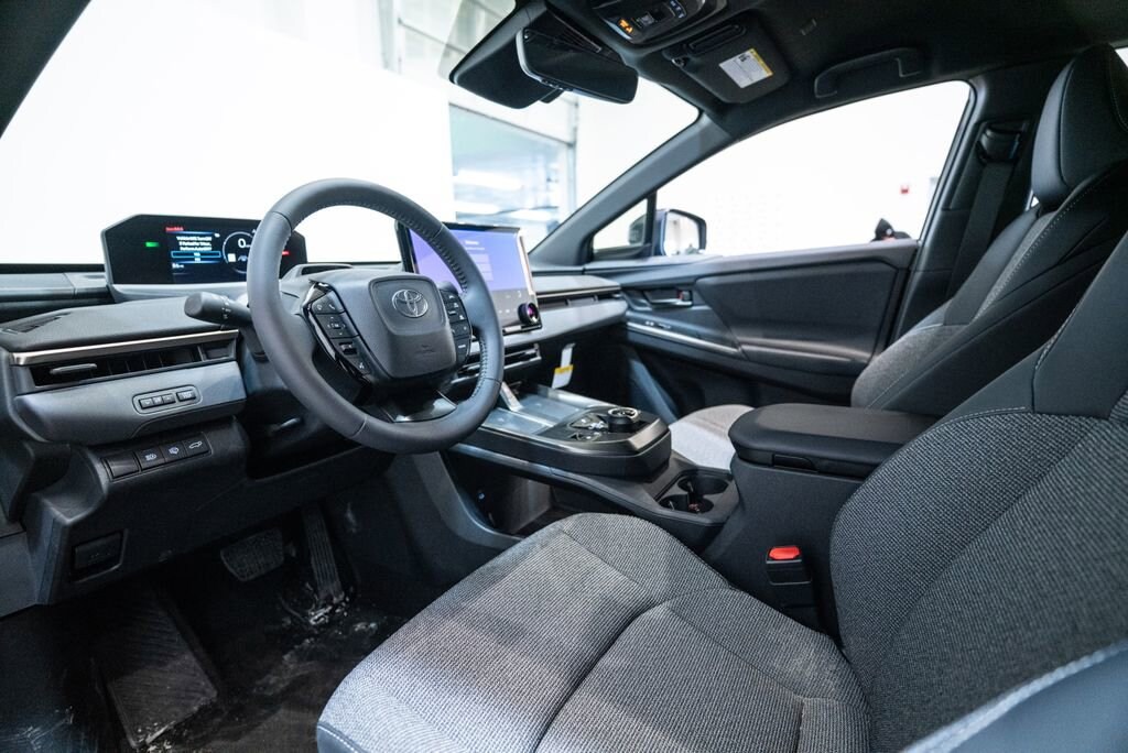 This bZ is well equipped with 4-Wheel Disc Brakes, 6 Speakers, ABS brakes, Air Conditioning, All Weather Floor Liners/All Weather Cargo, Alloy wheels, AM/FM radio: SiriusXM, Apple CarPlay/Android Auto, Auto High-beam Headlights, Auto-dimming Rear-View mirror, Automatic temperature control, Brake assist, Bumpers: body-color, Delay-off headlights, Driver door bin, Driver vanity mirror, Dual front impact airbags, Dual front side impact airbags, Electronic Stability Control, Emergency communication system: Safety Connect (10-year trial), Exterior Parking Camera Rear, Fabric/SofTex Seat Trim, Four wheel independent suspension, Front anti-roll bar, Front Bucket Seats, Front Center Armrest, Front dual zone A/C, Front reading lights, Fully automatic headlights, Garage door transmitter: HomeLink, Heated door mirrors, Heated Front Seats, Heated front seats, Heated steering wheel, Illuminated entry, Knee airbag, Leather steering wheel, Low tire pressure warning, Mudguard, Navigation system: Drive Connect (3 year trial) includes Cloud Navigation with real time traffic and Google POI, Occupant sensing airbag, Outside temperature display, Overhead airbag, Overhead console, Panic alarm, Passenger door bin, Passenger vanity mirror, Power door mirrors, Power driver seat, Power Liftgate, Power steering, Power windows, Radio data system, Radio: 14 Toyota Audio Multimedia, Rain sensing wipers, Rear anti-roll bar, Rear seat center armrest, Rear window defroster, Remote keyless entry, Security system, Speed control, Speed-sensing steering, Split folding rear seat, Spoiler, Steering wheel mounted audio controls, Telescoping steering wheel, Tilt steering wheel, Traction control, Trip computer, Turn signal indicator mirrors, Variably intermittent wipers, and Wheels: 18 Alloy with Covers.