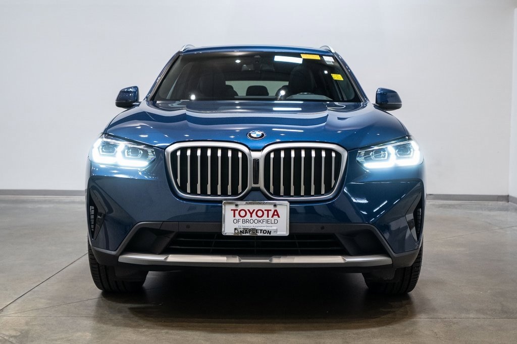 This X3 is well equipped with Connected Package Pro, Premium Package 2 (ZPA) (Gesture Control, Heated Front Seats, Heated Steering Wheel, Lumbar Support, Panoramic Moonroof (ZPA), and Reinforced Brakes), 8-Speed Automatic Sport, 12 Speakers, 3.385 Axle Ratio, 4-Wheel Disc Brakes, ABS brakes, Air Conditioning, Alloy wheels, AM/FM Radio, AM/FM radio: SiriusXM with 360L, Apple CarPlay & Android Auto Compatibility, Auto High-beam Headlights, Auto-dimming door mirrors, Auto-dimming Rear-View mirror, Automatic temperature control, BMW Assist eCall, BMW TeleServices, Brake assist, Bumpers: body-color, Comfort Access Keyless Entry, ConnectedDrive Services, Delay-off headlights, Driver door bin, Driver vanity mirror, Dual front impact airbags, Dual front side impact airbags, Electronic Stability Control, Emergency communication system: BMW Assist eCall, Enhanced Bluetooth, Exterior Parking Camera Rear, Four wheel independent suspension, Front anti-roll bar, Front Bucket Seats, Front Center Armrest, Front dual zone A/C, Front reading lights, Fully automatic headlights, Garage door transmitter, Genuine wood dashboard insert, Genuine wood door panel insert, Heated door mirrors, Hi-Fi Sound System, Illuminated entry, Knee airbag, Live Cockpit Pro w/Navigation, Low tire pressure warning, Memory seat, Navigation, Navigation System, Occupant sensing airbag, Outside temperature display, Overhead airbag, Panic alarm, Passenger door bin, Passenger vanity mirror, Perforated SensaTec Upholstery, Power door mirrors, Power driver seat, Power Front Seats, Power Liftgate, Power passenger seat, Power steering, Power windows, Radio data system, Rain sensing wipers, Rear air conditioning, Rear anti-roll bar, Rear reading lights, Rear seat center armrest, Rear window defroster, Rear window wiper, Remote Engine Start, Remote keyless entry, Roof rack: rails only, Security system, SiriusXM w/360L, Speed control, Speed-sensing steering, Speed-Sensitive Wipers, Split folding rear seat, Spoiler, Sport Seats, Sport steering wheel, Steering wheel mounted audio controls, Tachometer, Telescoping steering wheel, Tilt steering wheel, Traction control, Trip computer, Turn signal indicator mirrors, Variably intermittent wipers, Wheels: 19 x 7.5 Y-Spoke (Style 693), and WiFi Hotspot.