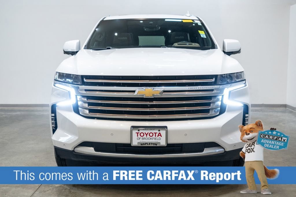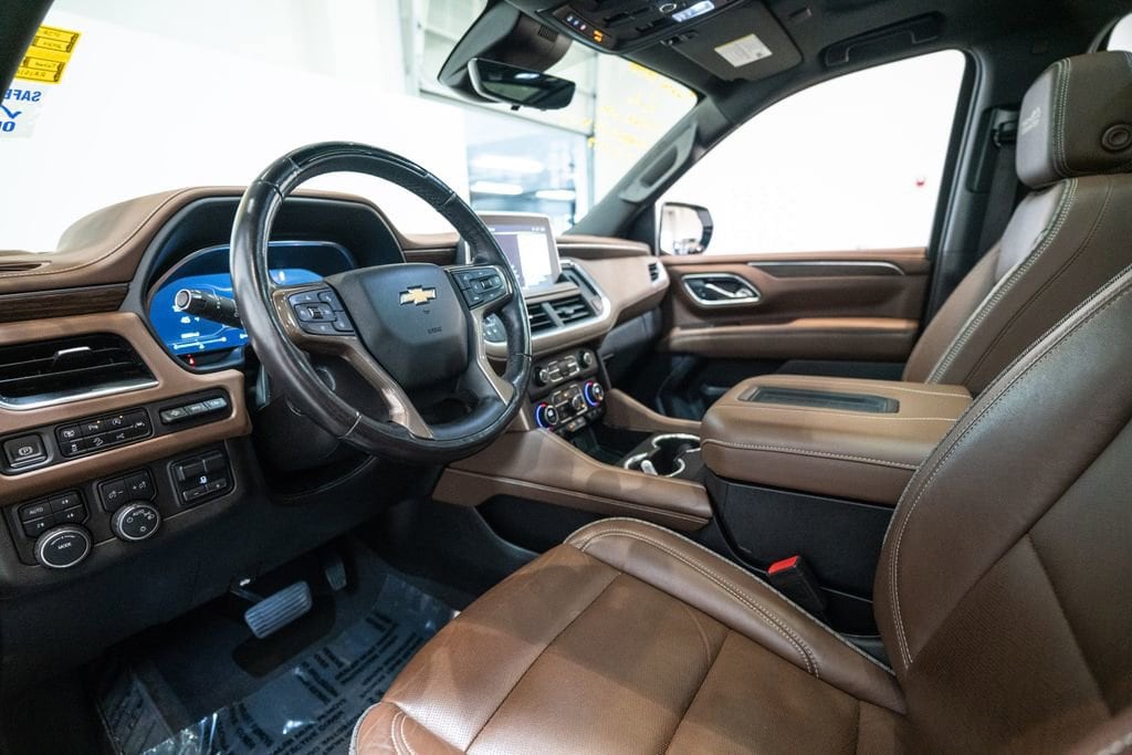 This Tahoe is well equipped with Advanced Technology Package (Enhanced Automatic Parking Assist, Reverse Automatic Braking, and Super Cruise), Advanced Trailering Package (Hitch View w/Pan/Zoom Image Adjustment, Integrated Trailer Brake Controller, Smart Trailer Integration Indicator, and Trailer Side Blind Zone Alert), License Plate Front Mounting Package, Max Trailering Package (Extra Capacity Cooling System), Preferred Equipment Group 3LZ (Heated Steering Wheel, Remote Start, 15 Diagonal Multi-Color Head-Up Display, 1st & 2nd Row Color-Keyed Carpeted Floor Mats, 2-Speed Active Electronic AutoTrac Transfer Case, 3rd Row 60/40 Power-Folding Split-Bench Seat, Adaptive Cruise Control, Bose 10-Speaker Centerpoint Surround Audio Sys Ft, Bright Front & Rear Door Sill Plates, Chrome Door Handles w/Body-Color Strip, Color-Keyed Carpeting Floor Covering, Driver & Front Outboard Passenger Airbags, Dual Exhaust System, Enhanced Automatic Emergency Braking, Enhanced Driver Information Center, Floor Console, Hands-Free Rear Power Programmable Liftgate, HD Surround Vision, Heated 2nd Row Outboard Seats, Hill Descent Control, Inside Rearview Auto-Dimming Rear Camera Mirror, Lane Change Alert w/Side Blind Zone Alert, LED Daytime Running Lamps, Memory Settings, Outside Heated Power-Adjustable Mirrors, Power Release 2nd Row Bucket Seats, Power Tilt & Telescopic Steering Column, Rear Camera Mirror Washer, Rear Cross Traffic Alert, Rear Pedestrian Alert, Safety Alert Seat, SiriusXM w/360L, Universal Home Remote, Wireless Charging, and Wrapped Steering Wheel), 4WD, Jet Black/Mocha Leather, Apple CarPlay/Android Auto, Dual-Pane Power Panoramic Sunroof, Heads-Up Display, Heated front seats, Ventilated front seats, 10 Speakers, 12-Way Power Driver & Passenger Seat Adjusters, 3.23 Rear Axle Ratio, 3rd row seats: split-bench, 4-Wheel Disc Brakes, ABS brakes, Adaptive suspension, Air Conditioning, Alloy wheels, AM/FM radio: SiriusXM with 360L, Auto High-beam Headlights, Auto-dimming door mirrors, Auto-dimming Rear-View mirror, Auto-leveling suspension, Automatic temperature control, Brake assist, Bumpers: body-color, Compass, Delay-off headlights, Driver & Front Passenger Heated & Ventilated Seats, Driver door bin, Driver vanity mirror, Dual front impact airbags, Dual front side impact airbags, Electronic Stability Control, Emergency communication system: OnStar and Chevrolet connected services capable, Exterior Parking Camera Rear, Four wheel independent suspension, Front anti-roll bar, Front Bucket Seats, Front Center Armrest, Front dual zone A/C, Front High-Back Reclining Bucket Seats, Front reading lights, Fully automatic headlights, Garage door transmitter, Heated door mirrors, Heated Driver & Front Passenger Seats, Heated rear seats, Heated steering wheel, Illuminated entry, Infotainment Display, Low tire pressure warning, Magnetic Ride Control Suspension, Memory seat, Navigation System, Occupant sensing airbag, Outside temperature display, Overhead airbag, Overhead console, Panic alarm, Passenger door bin, Passenger vanity mirror, Perforated Leather Seat Trim, Power door mirrors, Power driver seat, Power Liftgate, Power passenger seat, Power steering, Power windows, Premium audio system: Chevrolet Infotainment 3 Premium, Radio: Chevrolet Infotainment 3 Premium System, Rain sensing wipers, Rear air conditio