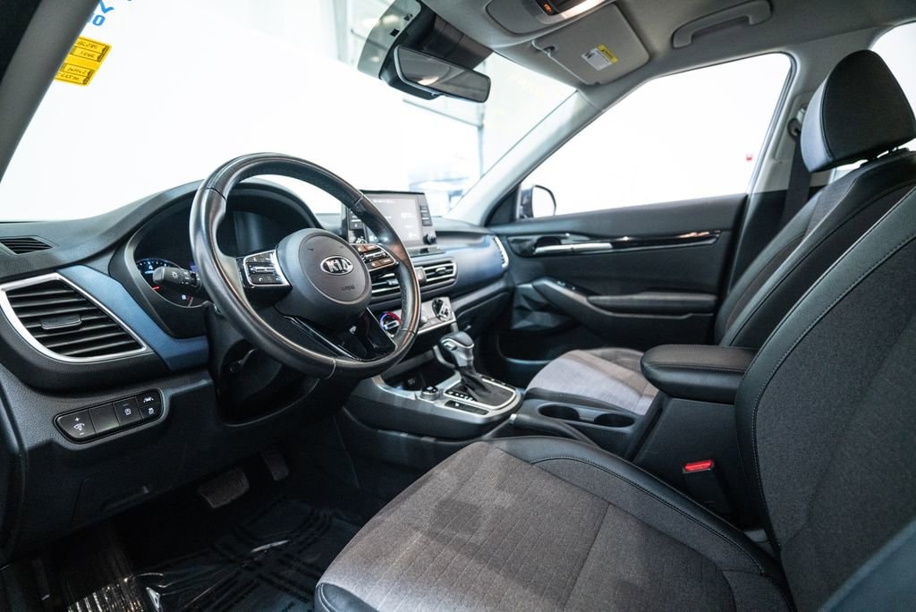 This Seltos is well equipped with Heated front seats, Remote keyless entry, 4-Wheel Disc Brakes, 6 Speakers, 6.052 Axle Ratio, ABS brakes, Air Conditioning, Alloy wheels, AM/FM radio, Apple CarPlay & Android Auto, Brake assist, Bumpers: body-color, Carpeted Floor Mats, Combination Sofino & Cloth Seat Trim, Delay-off headlights, Driver door bin, Driver vanity mirror, Dual front impact airbags, Dual front side impact airbags, Electronic Stability Control, Exterior Parking Camera Rear, Four wheel independent suspension, Front anti-roll bar, Front Bucket Seats, Front Center Armrest, Front fog lights, Front reading lights, Fully automatic headlights, Heated door mirrors, Heated Front Bucket Seats, Illuminated entry, Leather Shift Knob, Low tire pressure warning, Occupant sensing airbag, Outside temperature display, Overhead airbag, Overhead console, Panic alarm, Passenger door bin, Passenger vanity mirror, Power door mirrors, Power steering, Power windows, Radio: AM/FM/MP3 Display Audio, Rear seat center armrest, Rear window defroster, Rear window wiper, Security system, Speed control, Speed-sensing steering, Split folding rear seat, Spoiler, Steering wheel mounted audio controls, Tachometer, Telescoping steering wheel, Tilt steering wheel, Traction control, Trip computer, Turn signal indicator mirrors, Variably intermittent wipers, Wheel Locks, and Wheels: 17 Alloy w/Dark Gray Finish.