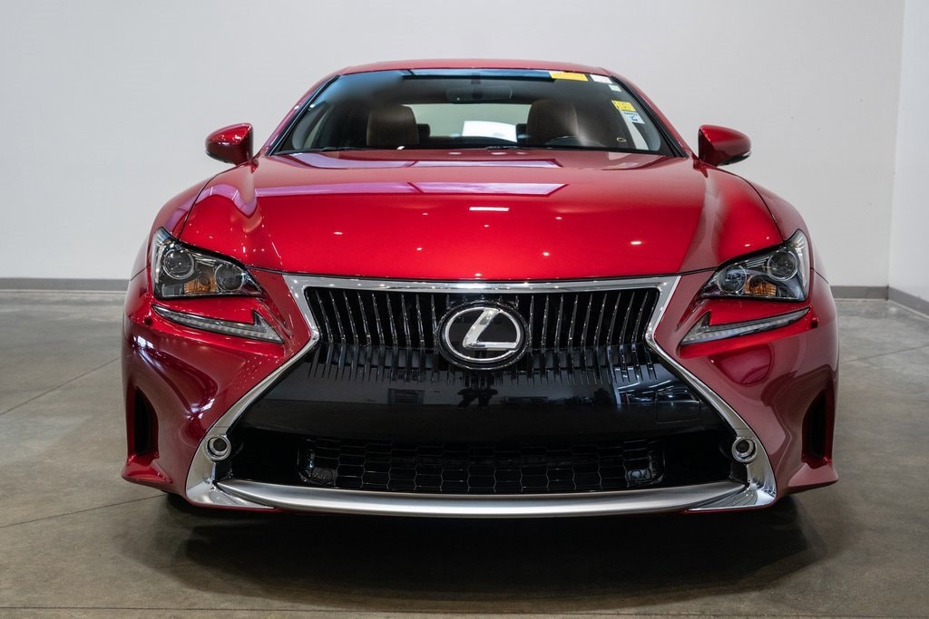 This RC is well equipped with Premium Package (Blind Spot Monitor w/Rear Cross Traffic Alert and Heated & Vented Driver & Passenger Seats), 10 Speakers, 4-Wheel Disc Brakes, ABS brakes, Air Conditioning, Alloy wheels, AM/FM radio: SiriusXM, Auto-dimming Rear-View mirror, Automatic temperature control, Back-Up Monitor w/Dynamic Grid Lines, Brake assist, Bumpers: body-color, CD player, Compass, Delay-off headlights, Driver door bin, Driver vanity mirror, Dual front impact airbags, Dual front side impact airbags, Electronic Stability Control, Emergency communication system: Safety Connect, Exterior Parking Camera Rear, Four wheel independent suspension, Front anti-roll bar, Front Bucket Seats, Front Center Armrest, Front dual zone A/C, Front reading lights, Fully automatic headlights, Garage door transmitter: HomeLink, Genuine wood dashboard insert, Genuine wood door panel insert, Heated door mirrors, Heated front seats, Heated Power Front Bucket Seats, Illuminated entry, Knee airbag, Leather Shift Knob, Low tire pressure warning, NuLuxe Seat Trim, Occupant sensing airbag, Outside temperature display, Overhead airbag, Overhead console, Panic alarm, Passenger door bin, Passenger vanity mirror, Power door mirrors, Power driver seat, Power passenger seat, Power steering, Power windows, Radio data system, Radio: AM/FM/In-Dash CD Lexus Display Audio, Rear anti-roll bar, Rear reading lights, Rear side impact airbag, Rear window defroster, Remote keyless entry, Security system, Speed control, Speed-sensing steering, Speed-Sensitive Wipers, Split folding rear seat, Steering wheel mounted audio controls, Tachometer, Telescoping steering wheel, Tilt steering wheel, Traction control, Trip computer, Turn signal indicator mirrors, Variably intermittent wipers, and Wheels: 18 x 8 Fr & 18 x 9 Rr 5-Spoke Alloy.