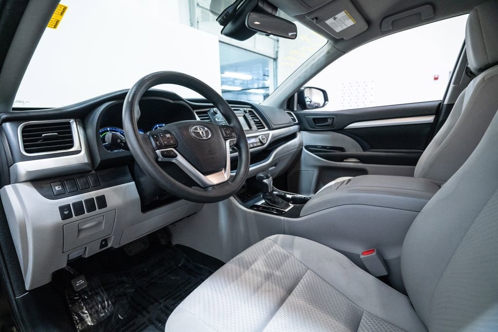 This Highlander Hybrid is well equipped with 3.5L V6 DOHC Dual VVT-i 24V, 3.542 Axle Ratio, 3rd row seats: split-bench, 4-Wheel Disc Brakes, 6 Speakers, ABS brakes, Air Conditioning, Alloy wheels, AM/FM radio, Auto High-beam Headlights, Automatic temperature control, Brake assist, Bumpers: body-color, CD player, Delay-off headlights, Driver door bin, Driver vanity mirror, Dual front impact airbags, Dual front side impact airbags, Electronic Stability Control, Exterior Parking Camera Rear, Fabric Seat Trim, Four wheel independent suspension, Front anti-roll bar, Front Bucket Seats, Front Center Armrest, Front dual zone A/C, Front reading lights, Fully automatic headlights, Heated door mirrors, Illuminated entry, Knee airbag, Low tire pressure warning, Occupant sensing airbag, Outside temperature display, Overhead airbag, Overhead console, Panic alarm, Passenger door bin, Passenger vanity mirror, Power door mirrors, Power steering, Power windows, Radio: Entune Audio, Rear air conditioning, Rear anti-roll bar, Rear reading lights, Rear window defroster, Rear window wiper, Reclining 3rd row seat, Remote keyless entry, Speed control, Speed-sensing steering, Split folding rear seat, Spoiler, Steering wheel mounted audio controls, Telescoping steering wheel, Tilt steering wheel, Traction control, Trip computer, Turn signal indicator mirrors, Variably intermittent wipers, and Wheels: 18 Split 5-Spoke Machined-Face Alloy.