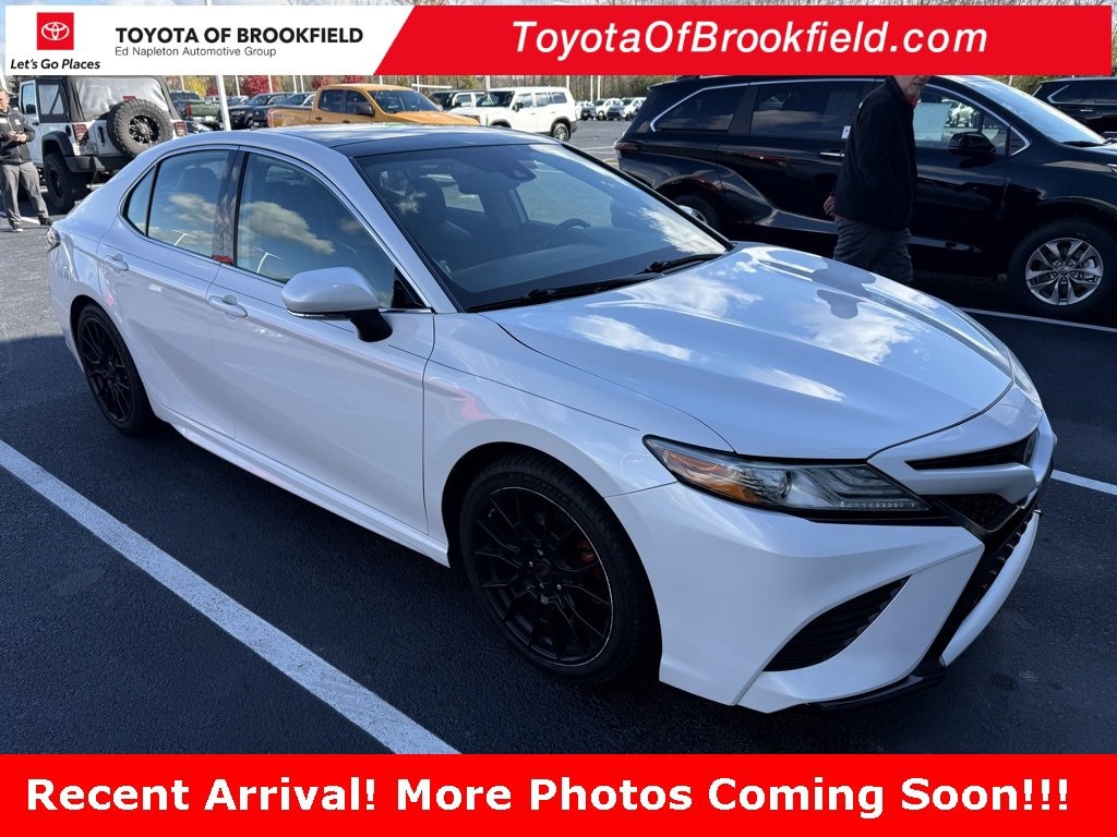 This Camry is well equipped with Black w/Perforated Leather Seat Trim, Navigation System, Panoramic Roof, 4-Wheel Disc Brakes, 6 Speakers, ABS brakes, Air Conditioning, Alloy wheels, AM/FM radio: SiriusXM, Apple CarPlay, Auto High-beam Headlights, Auto-dimming Rear-View mirror, Automatic temperature control, Brake assist, Bumpers: body-color, CD player, Compass, Delay-off headlights, Driver door bin, Driver vanity mirror, Dual front impact airbags, Dual front side impact airbags, Electronic Stability Control, Emergency communication system: Safety Connect, Exterior Parking Camera Rear, Four wheel independent suspension, Front anti-roll bar, Front Bucket Seats, Front Center Armrest, Front dual zone A/C, Front reading lights, Fully automatic headlights, Garage door transmitter: HomeLink, Heated door mirrors, Heated front seats, Illuminated entry, Knee airbag, Leather Shift Knob, Low tire pressure warning, Multi-Stage Heated Front Bucket Seats, Occupant sensing airbag, Outside temperature display, Overhead airbag, Overhead console, Panic alarm, Passenger door bin, Passenger vanity mirror, Perforated Leather Seat Trim, Power door mirrors, Power driver seat, Power passenger seat, Power steering, Power windows, Radio data system, Radio: Entune 3.0 Audio Plus w/App Suite, Rear anti-roll bar, Rear reading lights, Rear seat center armrest, Rear side impact airbag, Rear window defroster, Remote keyless entry, Security system, Speed control, Speed-sensing steering, Split folding rear seat, Spoiler, Sport steering wheel, Steering wheel mounted audio controls, Tachometer, Telescoping steering wheel, Tilt steering wheel, Traction control, Trip computer, Turn signal indicator mirrors, Variably intermittent wipers, and Wheels: 8.0J x 19 Black Machined-Finish Alloy.