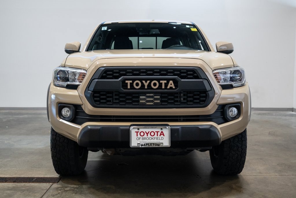 This Tacoma is well equipped with TRD Off Road Package (120V/400W Deck Mounted AC Power, Black Overfenders, Engine Immobilizer, Power Sliding Rear Window w/Privacy Glass, and Smart Key w/Push Button Start), 4WD, ABS brakes, Active Cruise Control, Alloy wheels, Electronic Stability Control, Heated door mirrors, Illuminated entry, Low tire pressure warning, Remote keyless entry, Traction control, 6 Speakers, Air Conditioning, AM/FM radio: SiriusXM, Anti-whiplash front head restraints, Apple CarPlay/Android Auto, Auto High-beam Headlights, Auto-dimming Rear-View mirror, Blackout Emblem Overlays, Brake assist, Bumpers: body-color, Driver door bin, Dual front impact airbags, Dual front side impact airbags, Emergency communication system: Safety Connect with 1-year trial, Exterior Parking Camera Rear, Fabric Seat Trim (FD), Front anti-roll bar, Front Bucket Seats, Front Center Armrest, Front fog lights, Front reading lights, Front wheel independent suspension, Knee airbag, Leather Shift Knob, Occupant sensing airbag, Outside temperature display, Overhead airbag, Overhead console, Panic alarm, Passenger door bin, Power door mirrors, Power driver seat, Power steering, Power windows, Radio: AM/FM/HD Radio, Rear step bumper, Security system, Speed control, Speed-sensing steering, Split folding rear seat, Steering wheel mounted audio controls, Tachometer, Telescoping steering wheel, Tilt steering wheel, Trip computer, Turn signal indicator mirrors, Variably intermittent wipers, and Wheels: 16 x 7J Machined Contrast Alloy.