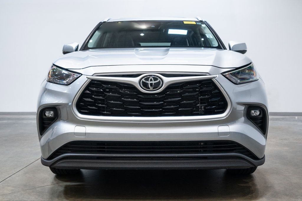 This Highlander is well equipped with AWD, 2nd Row Bench Seat, 3.003 Axle Ratio, 3rd row seats: split-bench, 4-Wheel Disc Brakes, 6 Speakers, ABS brakes, Air Conditioning, Alloy wheels, AM/FM radio: SiriusXM, Apple CarPlay/Android Auto, Auto High-beam Headlights, Auto-dimming Rear-View mirror, Automatic temperature control, Brake assist, Bumpers: body-color, Delay-off headlights, Driver door bin, Driver vanity mirror, Dual front impact airbags, Dual front side impact airbags, Electronic Stability Control, Emergency communication system: Safety Connect with 1-year trial, Exterior Parking Camera Rear, Four wheel independent suspension, Front anti-roll bar, Front Bucket Seats, Front Center Armrest, Front dual zone A/C, Front fog lights, Front reading lights, Fully automatic headlights, Garage door transmitter: HomeLink, Heated door mirrors, Heated Front Bucket Seats, Heated front seats, Illuminated entry, Knee airbag, Leather Shift Knob, Low tire pressure warning, Occupant sensing airbag, Outside temperature display, Overhead airbag, Overhead console, Panic alarm, Passenger door bin, Passenger vanity mirror, Power door mirrors, Power driver seat, Power Liftgate, Power moonroof, Power passenger seat, Power steering, Power windows, Radio: Audio Plus, Rear air conditioning, Rear anti-roll bar, Rear reading lights, Rear window defroster, Rear window wiper, Reclining 3rd row seat, Remote keyless entry, Roof rack: rails only, Security system, SofTex Seat Trim, Speed control, Speed-sensing steering, Split folding rear seat, Spoiler, Steering wheel mounted audio controls, Tachometer, Telescoping steering wheel, Tilt steering wheel, Traction control, Trip computer, Turn signal indicator mirrors, Variably intermittent wipers, and Wheels: 18 Machined-Finish Alloy.