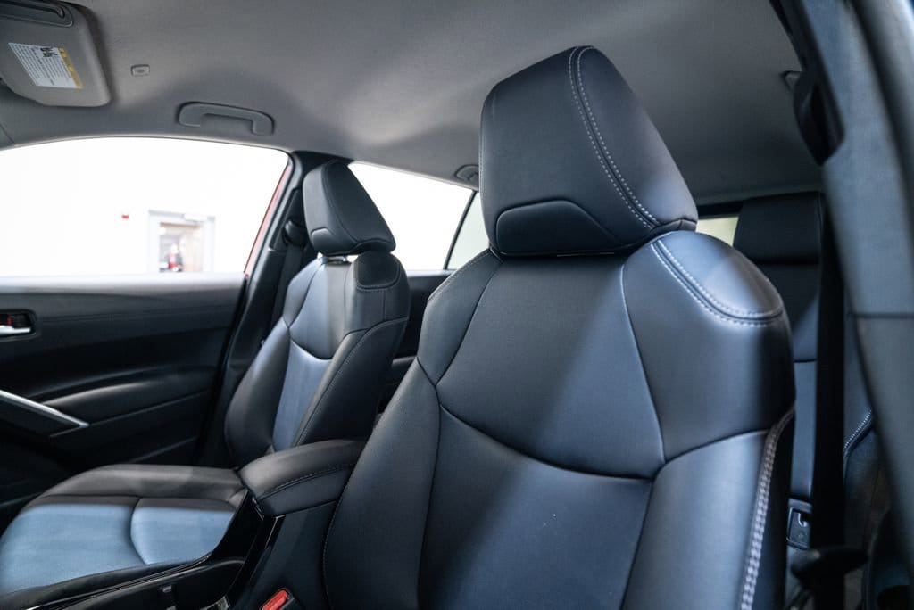 This Corolla Cross is well equipped with 4-Wheel Disc Brakes, 4.014 Axle Ratio, 6 Speakers, ABS brakes, Air Conditioning, Alloy wheels, AM/FM radio: SiriusXM, Auto High-beam Headlights, Auto-dimming Rear-View mirror, Automatic temperature control, Brake assist, Bumpers: body-color, Delay-off headlights, Driver door bin, Driver vanity mirror, Dual front impact airbags, Dual front side impact airbags, Electronic Stability Control, Emergency communication system: Safety Connect (10-year trial), Exterior Parking Camera Rear, Front anti-roll bar, Front Bucket Seats, Front Center Armrest, Front dual zone A/C, Front fog lights, Front reading lights, Front wheel independent suspension, Fully automatic headlights, Heated door mirrors, Heated Front Bucket Seats, Heated front seats, Illuminated entry, Knee airbag, Leather Shift Knob, Leather steering wheel, Low tire pressure warning, Occupant sensing airbag, Outside temperature display, Overhead airbag, Panic alarm, Passenger door bin, Passenger vanity mirror, Power door mirrors, Power driver seat, Power steering, Power windows, Radio data system, Radio: 8 Toyota Multimedia, Rear anti-roll bar, Rear seat center armrest, Rear side impact airbag, Rear window defroster, Rear window wiper, Remote keyless entry, Roof rack: rails only, Softex Synthetic Leather Seat Trim, Speed control, Split folding rear seat, Spoiler, Steering wheel mounted audio controls, Tachometer, Telescoping steering wheel, Tilt steering wheel, Traction control, Trip computer, Turn signal indicator mirrors, Variably intermittent wipers, and Wheels: 18 Alloy w/Black-Painted Machine-Finish.