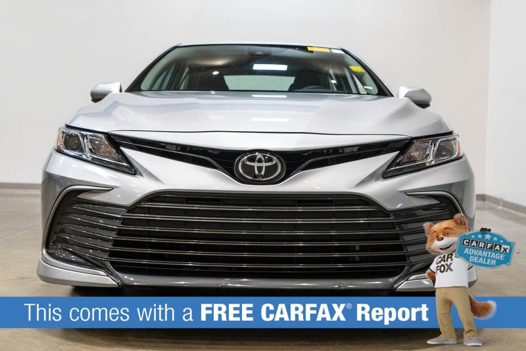 This Camry is well equipped with Toyota Gold Certified Certified, Ash Cloth, Apple CarPlay/Android Auto, Auto High-beam Headlights, 4-Wheel Disc Brakes, 6 Speakers, ABS brakes, Air Conditioning, Alloy wheels, AM/FM radio: SiriusXM, Automatic temperature control, Brake assist, Bumpers: body-color, Delay-off headlights, Driver door bin, Driver vanity mirror, Dual front impact airbags, Dual front side impact airbags, Electronic Stability Control, Emergency communication system: Safety Connect (1-year trial), Exterior Parking Camera Rear, Fabric Seat Trim, Four wheel independent suspension, Front anti-roll bar, Front Bucket Seats, Front Center Armrest, Front dual zone A/C, Front reading lights, Fully automatic headlights, Illuminated entry, Knee airbag, Low tire pressure warning, Occupant sensing airbag, Outside temperature display, Overhead airbag, Overhead console, Panic alarm, Passenger door bin, Passenger vanity mirror, Power door mirrors, Power driver seat, Power steering, Power windows, Radio data system, Radio: Audio, Rear anti-roll bar, Rear seat center armrest, Rear side impact airbag, Rear window defroster, Remote keyless entry, Security system, Speed control, Speed-sensing steering, Split folding rear seat, Steering wheel mounted audio controls, Tachometer, Telescoping steering wheel, Tilt steering wheel, Traction control, Trip computer, Variably intermittent wipers, and Wheels: 17 x 7.5J Alloy.