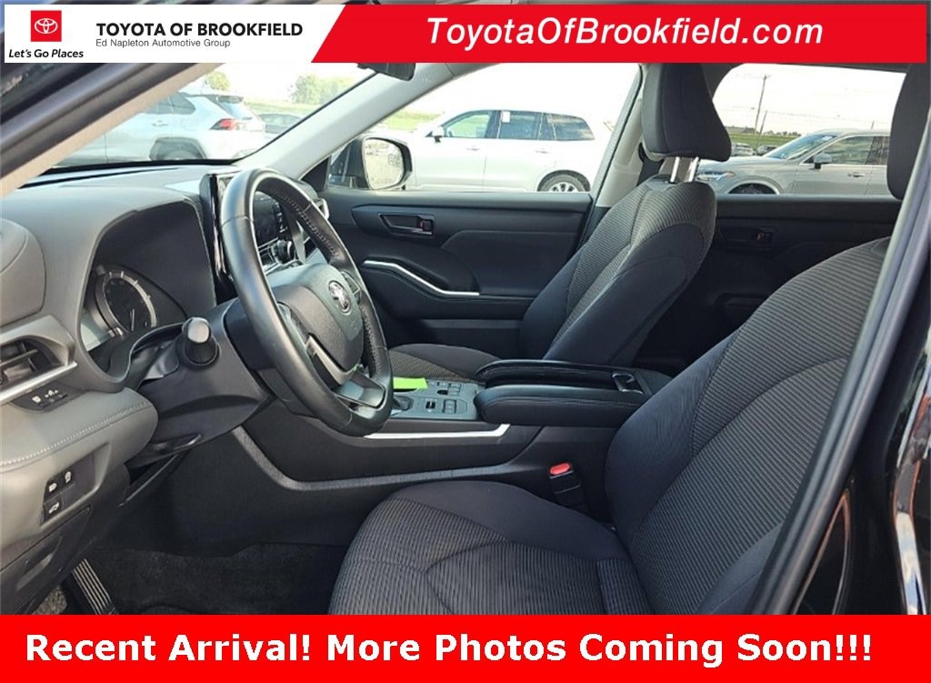 This Highlander is well equipped with AWD, ABS brakes, Active Cruise Control, Alloy wheels, Electronic Stability Control, Front dual zone A/C, Heated door mirrors, Illuminated entry, Low tire pressure warning, Power Liftgate, Remote keyless entry, Traction control, 18 Painted Alloy Wheels, 3.329 Axle Ratio, 3rd row seats: split-bench, 4-Wheel Disc Brakes, 6 Speakers, Air Conditioning, AM/FM radio: SiriusXM, Apple CarPlay/Android Auto, Auto High-beam Headlights, Automatic temperature control, Brake assist, Bumpers: body-color, Delay-off headlights, Driver door bin, Driver vanity mirror, Dual front impact airbags, Dual front side impact airbags, Emergency communication system: Safety Connect (up to 10-year trial subscription), Exterior Parking Camera Rear, Fabric Seat Trim, Four wheel independent suspension, Front anti-roll bar, Front Bucket Seats, Front Center Armrest, Front fog lights, Front reading lights, Fully automatic headlights, Knee airbag, Leather Shift Knob, Leather steering wheel, Occupant sensing airbag, Outside temperature display, Overhead airbag, Overhead console, Panic alarm, Passenger door bin, Passenger vanity mirror, Power door mirrors, Power driver seat, Power steering, Power windows, Radio: 8 Toyota Audio Multimedia, Rear air conditioning, Rear anti-roll bar, Rear reading lights, Rear seat center armrest, Rear window defroster, Rear window wiper, Reclining 3rd row seat, Security system, Speed control, Speed-sensing steering, Split folding rear seat, Spoiler, Steering wheel mounted audio controls, Tachometer, Telescoping steering wheel, Tilt steering wheel, Trip computer, Turn signal indicator mirrors, and Variably intermittent wipers.