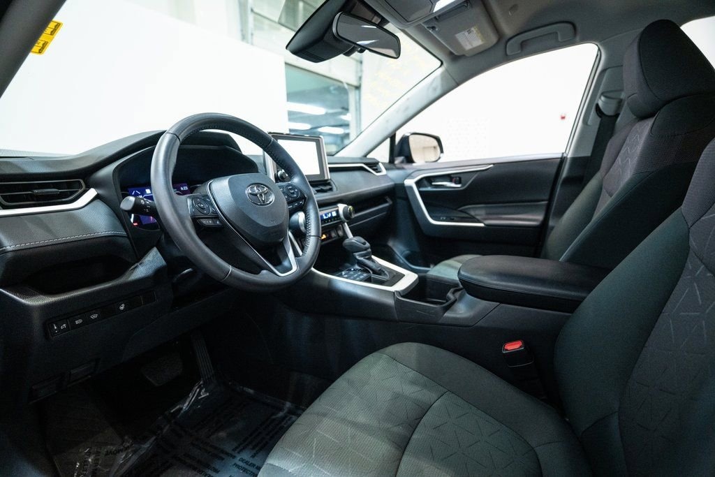 This RAV4 is well equipped with Weather Package (3 Spoke Leather Heated Steering Wheel and Front Seat Heating), AWD, Black w/Fabric Seat Trim, 4-Wheel Disc Brakes, 6 Speakers, ABS brakes, Air Conditioning, Alloy wheels, AM/FM radio: SiriusXM, Auto High-beam Headlights, Automatic temperature control, Axle Ratio: 3.177, Brake assist, Bumpers: body-color, Delay-off headlights, Driver door bin, Driver vanity mirror, Dual front impact airbags, Dual front side impact airbags, Electronic Stability Control, Emergency communication system: Safety Connect (10-year trial), Exterior Parking Camera Rear, Fabric Seat Trim, Four wheel independent suspension, Front anti-roll bar, Front Bucket Seats, Front Center Armrest, Front dual zone A/C, Front reading lights, Fully automatic headlights, Heated door mirrors, Illuminated entry, Knee airbag, Low tire pressure warning, Occupant sensing airbag, Outside temperature display, Overhead airbag, Overhead console, Panic alarm, Passenger door bin, Passenger vanity mirror, Power door mirrors, Power driver seat, Power steering, Power windows, Radio data system, Radio: AM/FM/XM Audio System, Rear anti-roll bar, Rear seat center armrest, Rear window defroster, Rear window wiper, Remote keyless entry, Speed control, Speed-sensing steering, Split folding rear seat, Spoiler, Steering wheel mounted audio controls, Tachometer, Telescoping steering wheel, Tilt steering wheel, Traction control, Trip computer, Turn signal indicator mirrors, Variably intermittent wipers, and Wheels: 17 5-Spoke Silver Alloy.