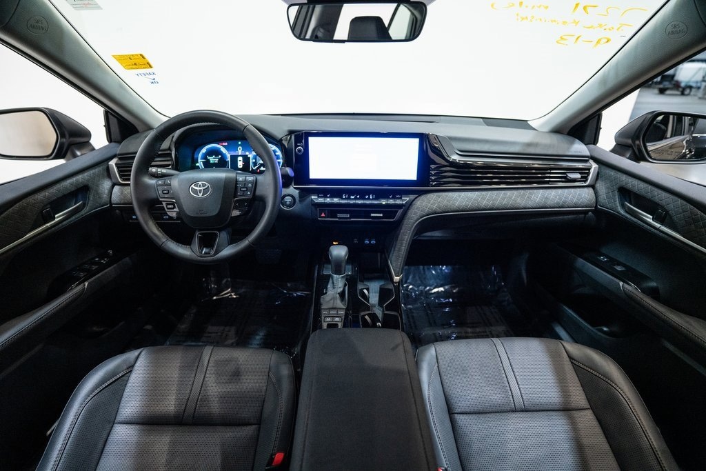 This Camry is well equipped with 2.5L 4-Cylinder 16V DOHC, Black w/SofTex & Fabric Seat Trim, ABS brakes, Active Cruise Control, Alloy wheels, Electronic Stability Control, Front dual zone A/C, Heated door mirrors, Heated Front Bucket Seats, Heated front seats, Illuminated entry, Low tire pressure warning, Remote keyless entry, Traction control, 4-Wheel Disc Brakes, 6 Speakers, Air Conditioning, AM/FM radio: SiriusXM, Apple CarPlay/Android Auto, Auto High-beam Headlights, Auto-dimming Rear-View mirror, Automatic temperature control, Brake assist, Bumpers: body-color, Delay-off headlights, Driver door bin, Driver vanity mirror, Dual front impact airbags, Dual front side impact airbags, Emergency communication system: Safety Connect (up to 10-year trial subscription), Exterior Parking Camera Rear, Four wheel independent suspension, Front anti-roll bar, Front Bucket Seats, Front Center Armrest, Front reading lights, Fully automatic headlights, Garage door transmitter: HomeLink, Heated steering wheel, Knee airbag, Leather Shift Knob, Leather steering wheel, Leather/Dinamica Microfiber Seat Trim, Occupant sensing airbag, Outside temperature display, Overhead airbag, Overhead console, Panic alarm, Passenger door bin, Passenger vanity mirror, Power door mirrors, Power driver seat, Power passenger seat, Power steering, Power windows, Radio data system, Radio: Toyota Audio Multimedia w/12.3 Touchscreen, Rear anti-roll bar, Rear reading lights, Rear seat center armrest, Rear side impact airbag, Rear window defroster, Security system, Speed control, Speed-sensing steering, Split folding rear seat, Steering wheel mounted audio controls, Telescoping steering wheel, Tilt steering wheel, Trip computer, Turn signal indicator mirrors, Variably intermittent wipers, and Wheels: 18 Black & Machine-Finished Alloy.
